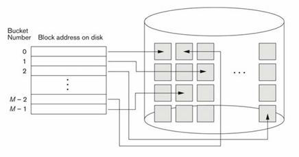 데이터를 저장할 디스크 블록의 주소는 Bucket Number에 따라 결정되는데, Bucket Number는 데이터의 해시 키(Hash Key)가 해싱 함수(Hashing Function)를 통과하여 계산된 값이다. 디스크의 각 주소는 특정 Bucket Number에 매핑되어 있으며, 이를 통해 데이터를 빠르게 검색할 수 있다.