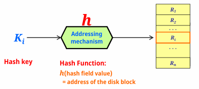 해시 함수(Hash Function)를 사용하여 데이터를 효율적으로 저장하고 검색하는 파일 조직 방식 중 하나로, 특정 검색 조건(단일 필드(= Hash Field)에 대한 동등 조건)에서 매우 빠르게 레코드에 접근할 수 있도록 설계되었으며, 특히 Primary File Organization에서 많이 사용된다.