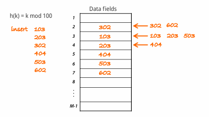 삽입하려는 record의 hash 필드 값이 이미 다른 record가 포함된 주소로 hash되는 경우, 다른 위치에 새 record를 삽입하면 된다.
