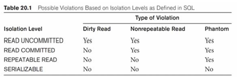 Isolation level and violations