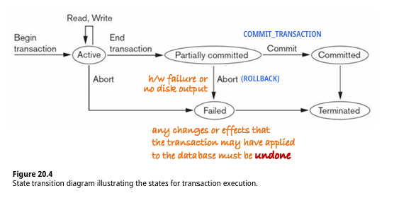 - abort: Transaction이 제대로 수행되지 않아 수행 전 상태로 돌려놓는 경우 -> DB나 다른 Transaction에 영향 x