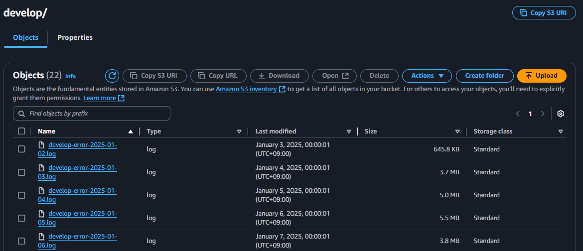 * 로그가 발생할 때마다 바로 s3에 올리면 부하가 생길 수 있다고 판단해, 로컬 파일을 만들어서 해당 파일에 저장 후, 특정 트리거가 발생시 로컬 파일을 s3에 업로드 하도록 했다.