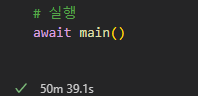 3. 비동기처리 통한 동시 작업과 executemany 통한 네트워크 오버헤드 감소 (50m)