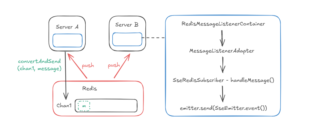 sseRedisTemplate.convertAndSend(SSE_TOPIC, message);
