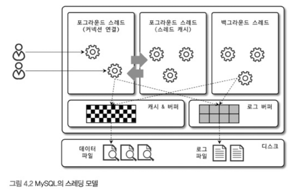 MySQL은 스레드 기반으로 작동하는데, 포그라운드 스레드와 백그라운드 스레드로 구분할 수 있다.