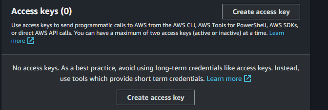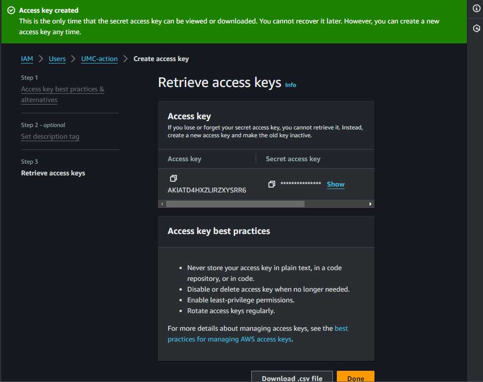 만든 action에서 아래로 내려가다보면 access key 만드는 곳이 보인다.