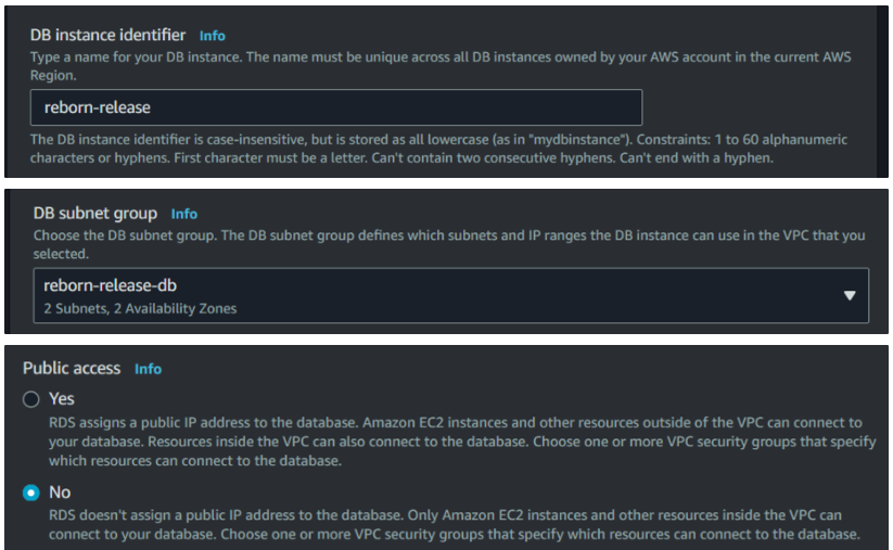 2) release subnet group