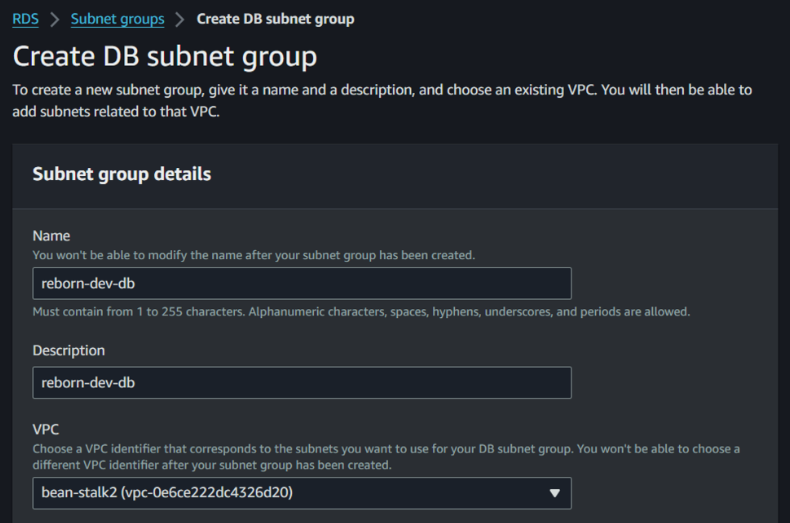 1) dev subnet group