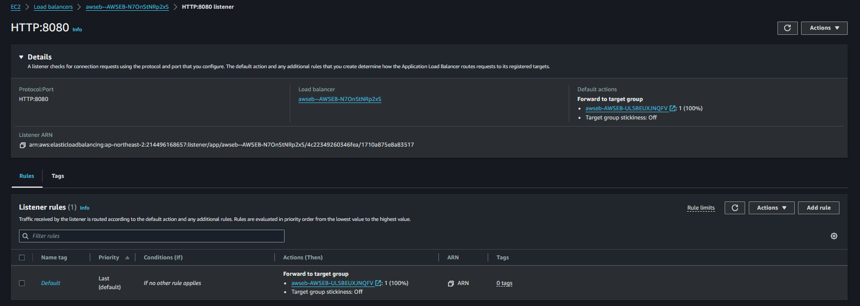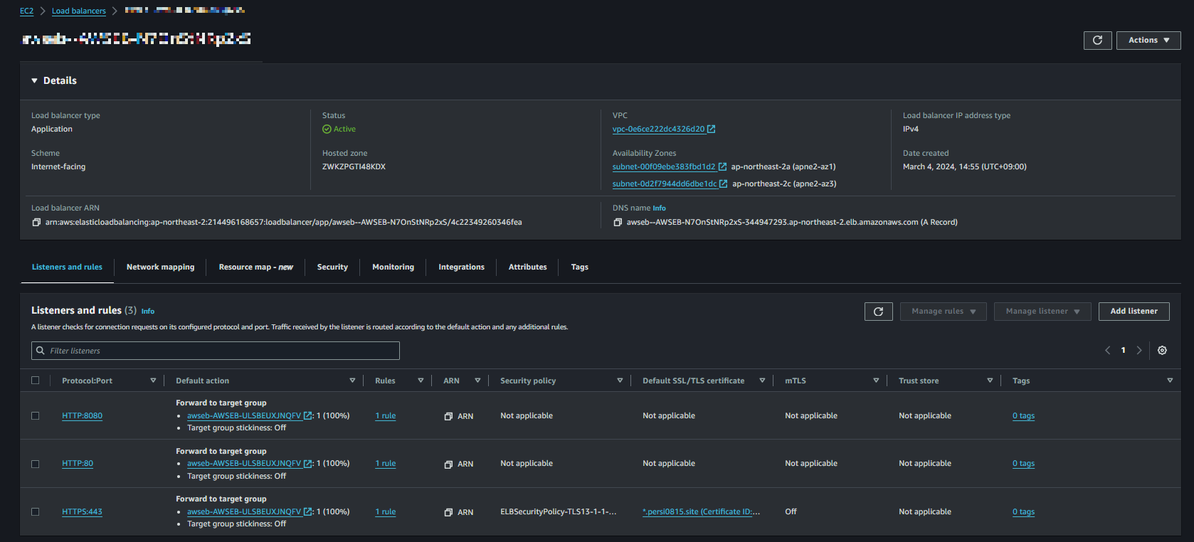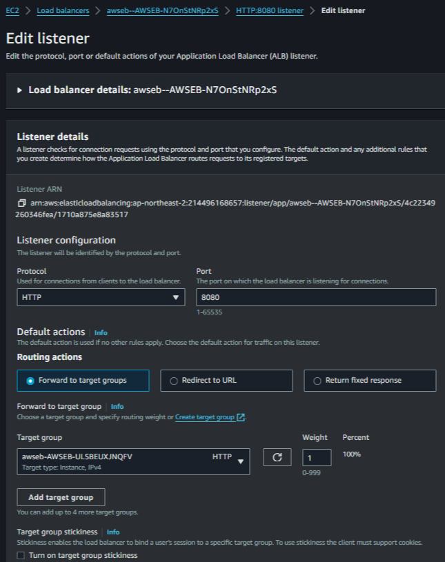 CICD 구축하며 ALB와 Target Group을 따로 설정을 해준적이 없어서 되어있는지 몰랐는데, 이렇게 Target Group을 통한 ALB가 자동으로 설정되어 있었다.. 예전에 EC2 배포하고 HTTPS 적용할때와 방법이 같아서 신기했다