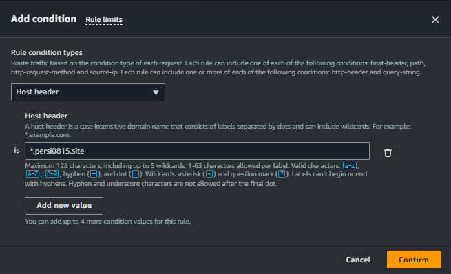 왼쪽 사진처럼 target group로 라우팅되어있던 설정에다가 오른쪽 설정을 아래 과정을 통해 추가해주었다.