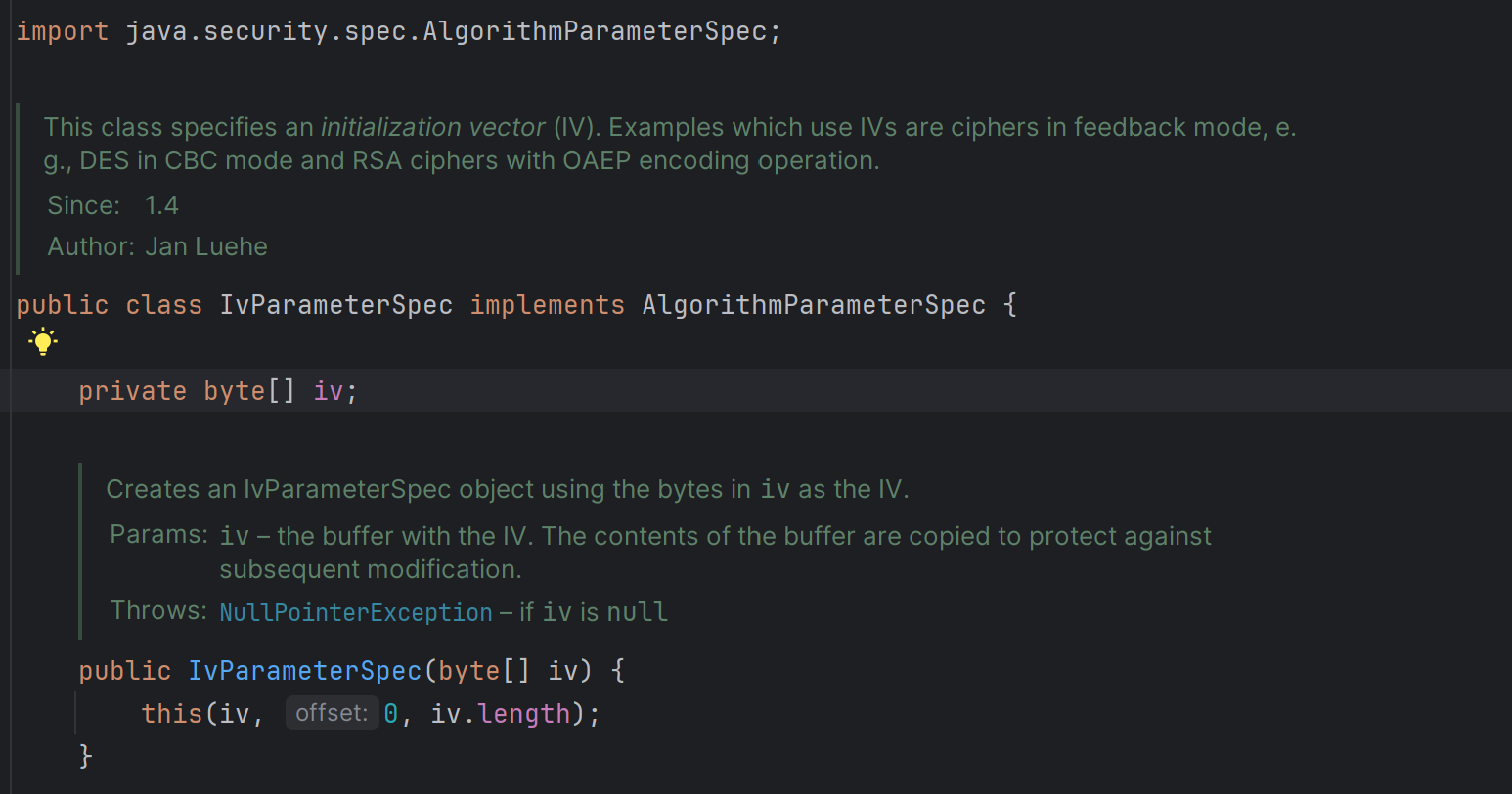 IvParameterSpec iv = new IvParameterSpec(ivBytes);